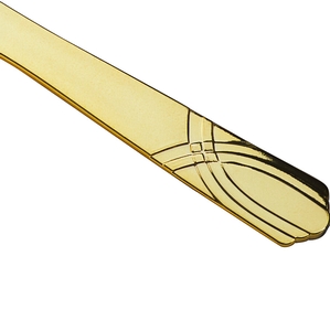 Featuring the look of a gold-plated knife at a fraction of the cost, this Visions Skyline knife is the ideal flatware for a variety of applications. Because this flatware is disposable, you won't have to waste any extra time washing large quantities of dishes. Easily add this knife to the place settings at your banquet, party, or other catered event!