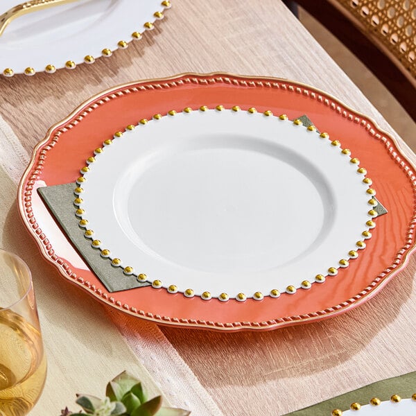 Effortlessly elevate the style of your next event by mixing and matching this versatile option with other Visions Beaded disposable dinnerware (sold separately). The disposable design ensures efficient cleanup, making this plate ideal for high-volume events where fast turnaround is essential. Take the hassle out of catering with this elegant and versatile white plastic plate and create a fresh, new look for every event!