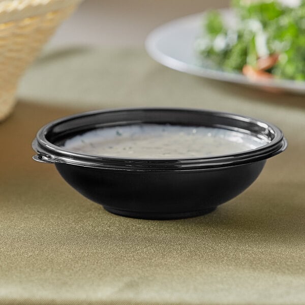 Pair this bowl with a lid (sold separately) to either send food home with guests or restock grab-and-go buffets with product. The quick-release tab makes removing the lid a simple, no-hassle experience. With an 8 oz. capacity, you'll be able to store cold foods like salads, sides, or pastas. It is only recommended to use this bowl with cold food.