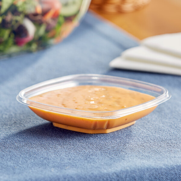 Make sure your menu offerings are held in a sturdy vessel with this Visions 8 oz. clear PET plastic square catering / serving bowl.