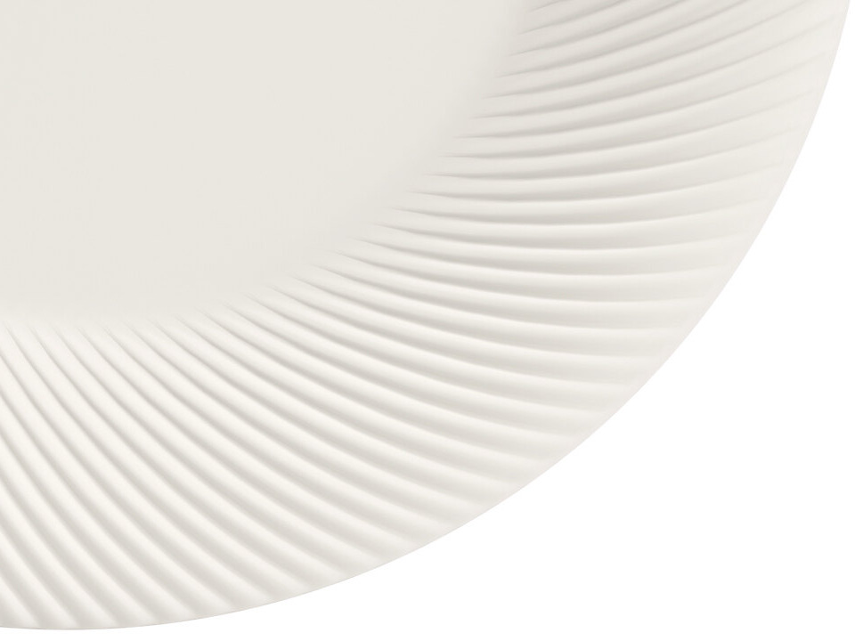 Inspired by ocean waves and sandy beaches, this Visions Wave 7" bone / ivory plastic plate is perfect for wedding receptions, banquets, and other catered events. Not only does its wide rim have cascading, seashell-like lines to draw guests' eyes toward each perfectly-plated dish, it also helps contain oils, dressings, and sauces to prevent accidental messes and spills. Plus, its rich, bone color creates the perfect backdrop for colorful foods, ensuring a striking appearance. Use this plate to serve your signature sides and desserts!