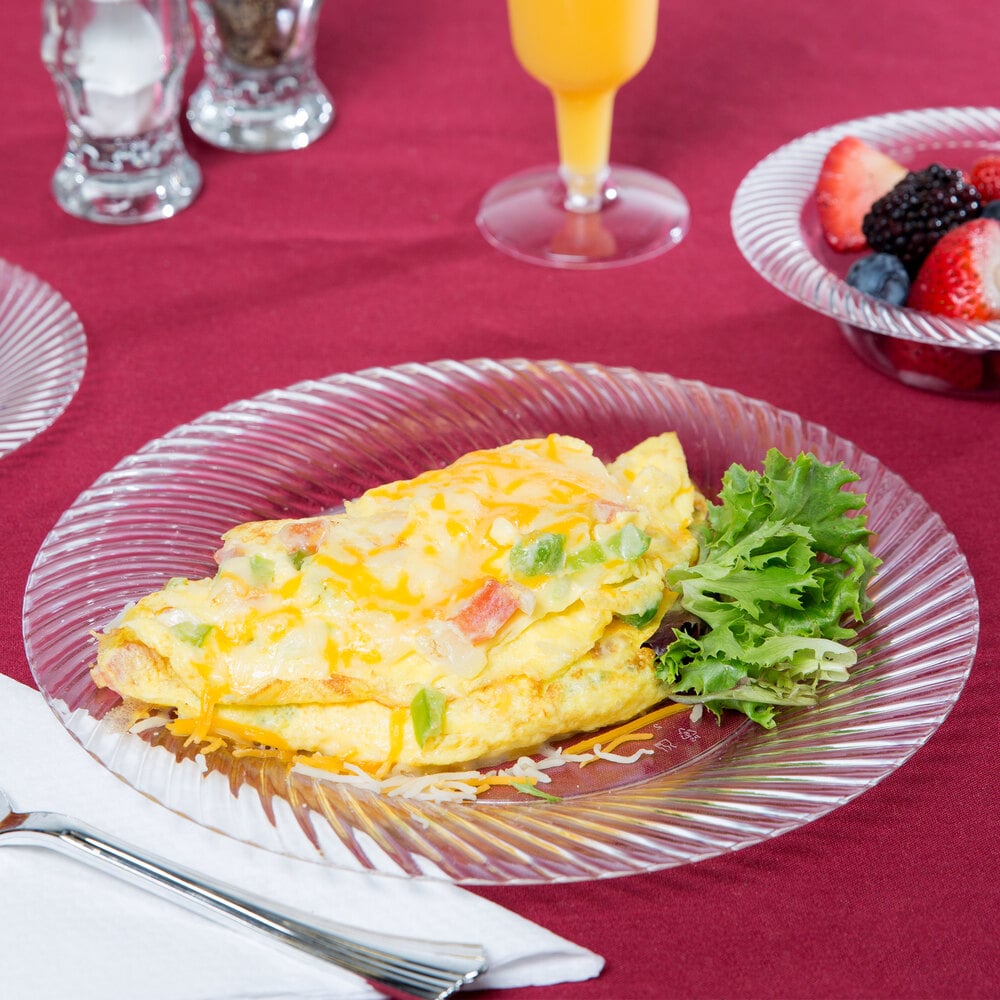 Inspired by ocean waves and sandy beaches, this Visions Wave plate is perfect for wedding receptions, banquets, and other catered events. Not only does its wide rim have cascading, seashell-like lines to draw guests' eyes toward each perfectly-plated dish, it also helps contain oils, dressings, and sauces to prevent accidental messes and spills. Plus, its crystal clear construction creates the perfect backdrop for colorful foods, ensuring a striking appearance.