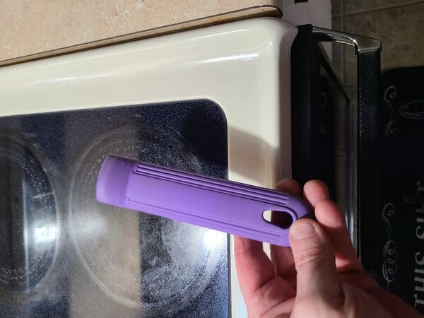 Nice purple sleeve to keep from burning hands on hot handles. Its economical too and can help prevent cross contamination for those with severe allergies.