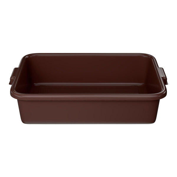 Ensure that your dinnerware and flatware pieces are properly organized and stored with the help of this Vollrath 1521B-01 Traex® 20" x 15" x 5"" brown high density polyethylene bus tub. Featuring a dependable high density polyethylene construction, this bus tub is designed for everyday use in high-volume consumer traffic environments. It also boasts reinforced ribs on the top and bottom of the tub for extra strength and protection against chips or cracks. Plus, it offers a temperature range of -30 to 180 degrees Fahrenheit, making it a versatile addition to any back-of-house setting! Its convenient stacking lugs even promote quicker drying and eliminate the possibility of your bus tubs getting stuck together when stacked.