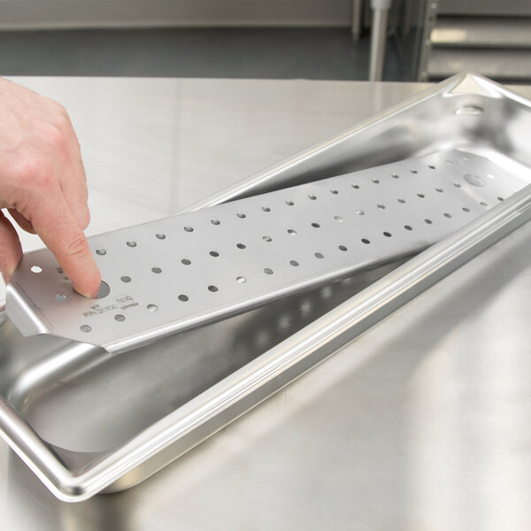 Designed to raise your food up off the bottom of a hotel pan, this false bottom lifts food up to display it better and also allows oil, sauce, or water to drain off. This is helpful since the foods will be more visible and easier to reach in the pans and it also keeps food from becoming soggy or over-saturated to make sure that your delicious fried chicken or french fries stay crisp and appetizing.