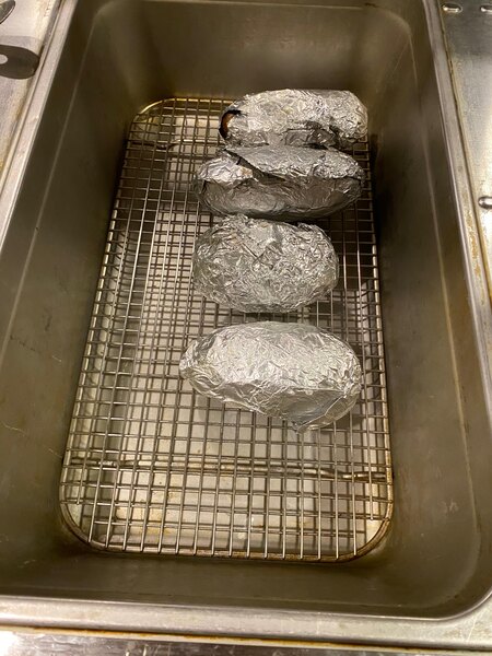 We use this to keep corned beef steaming in broth when it's being held hot on the line. This keeps the flavor and moisture in without cooking the beef to death.
