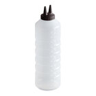 Provide your customers with their favorite condiments with this Vollrath 2224-1354 Traex® Color-Mate™ 24 oz. clear Twin Tip™ standard squeeze bottle with purple cap. With this bottle, you'll be able to provide easy, mess-free service, every time! At the same time, the durable, yet flexible polyethylene bottle is easy to squeeze for fast application of ketchup, mustard, signature sauces, dressings, or any of your favorite condiments. Pair this bottle with other clear bottles with different colored caps in the line creating a color-coded system in your busy kitchen, while being able to easily identify which products are in your bottles at a glance. The clear color makes it great for dispensing oils and light colored condiments with a neutral color, while the Twin Tip™ design saves time in high-volume areas, and allows you to quickly disperse condiments and dressing on sandwiches and salads with consistency. The purple color designates it for allergen free use, making your kitchen safe for all customers. Cut the tips to dispense more viscous sauces, or leave as is for thin liquids. The translucent bottle allows you to easily identify the contents and track fill levels at a glance, and you can pair it with other colored bottles from this line for quick identification.