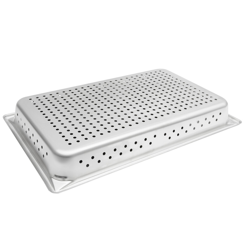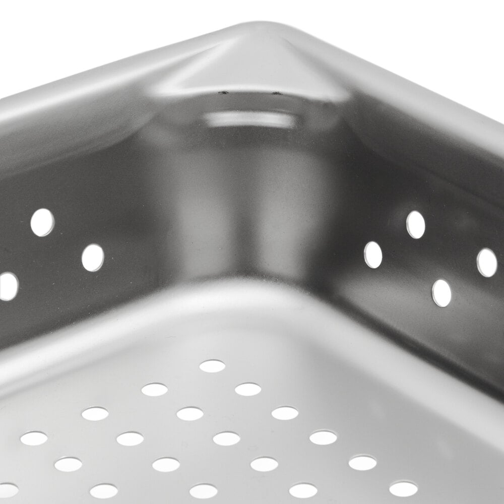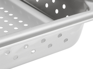The pan's 1/4" holes on the bottom and sides allow food to drain quickly, making this pan perfect for steaming or draining.
