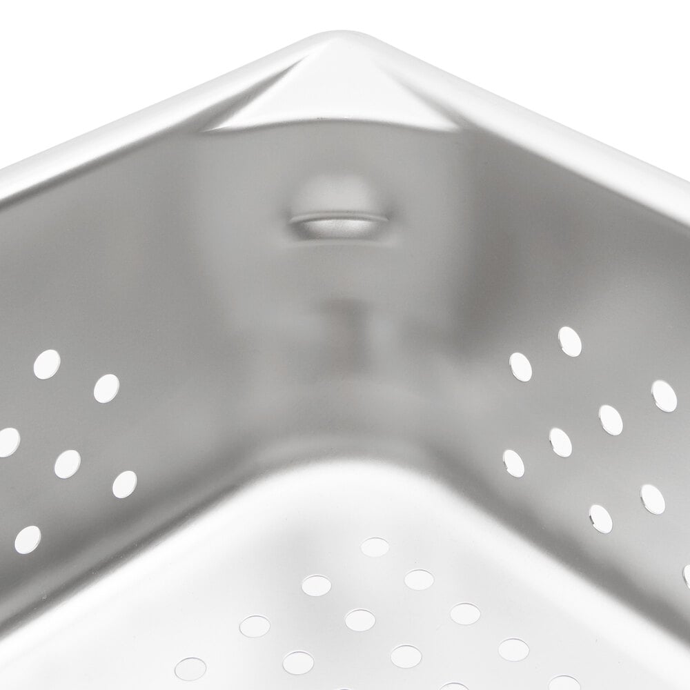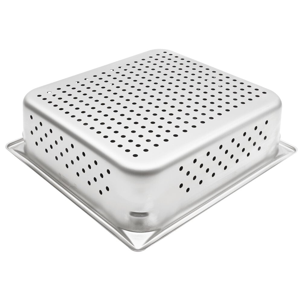 The pan's 1/4" holes on the sides and bottom allow food to drain quickly, making this pan perfect for steaming or draining.