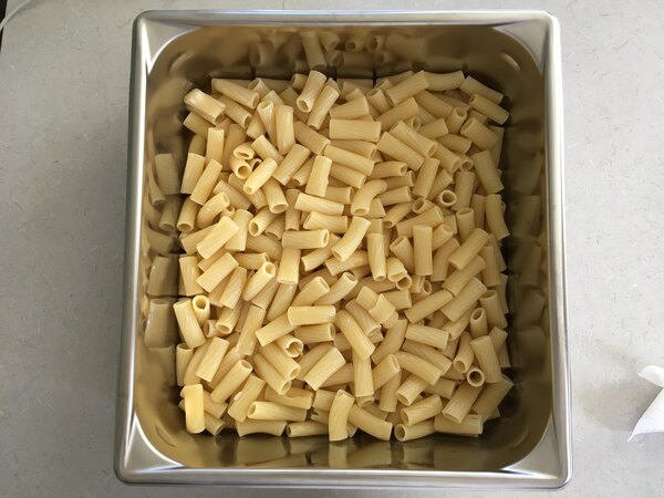 Rounded, diagonally tapered corners make it easier for cooks to pour out liquids and foods into storage containers. Also, rounded corners allow users to scoop out all food products more easily than from a pan with sharp corners.
