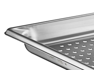 Flattened edges prevent steam from escaping around the tray when it’s in the steam table, giving it a 38% higher heat efficiency than trays with bent edges. The flat edges are also more comfortable for employees to hold.