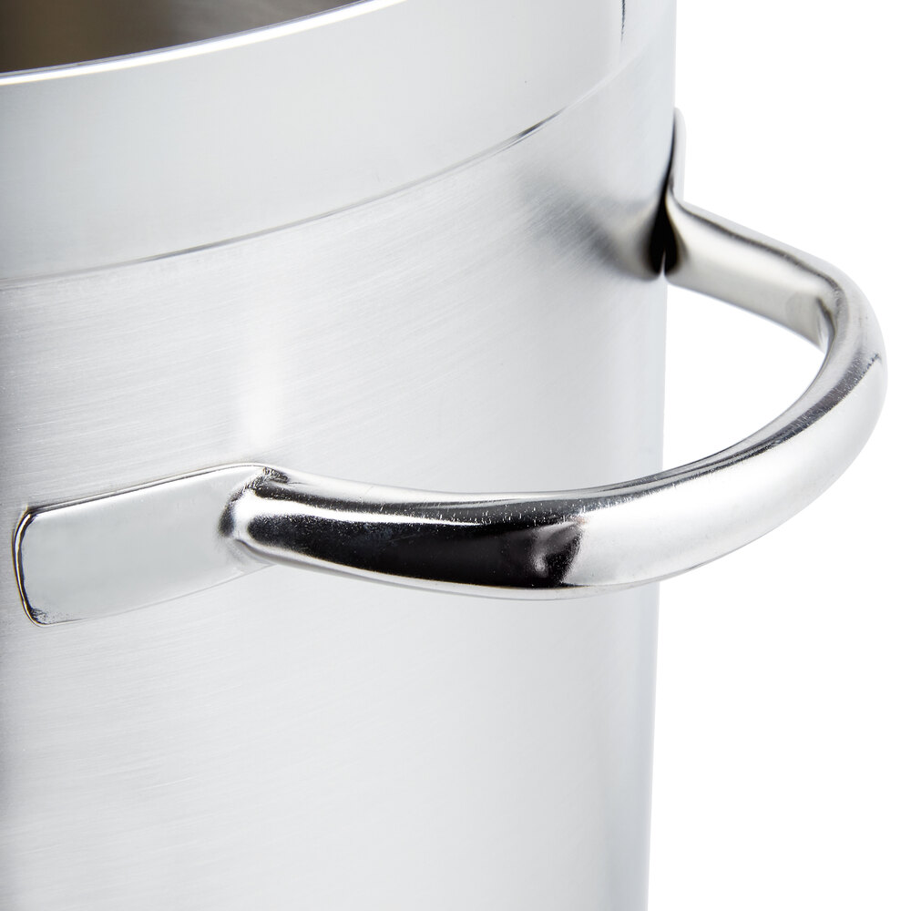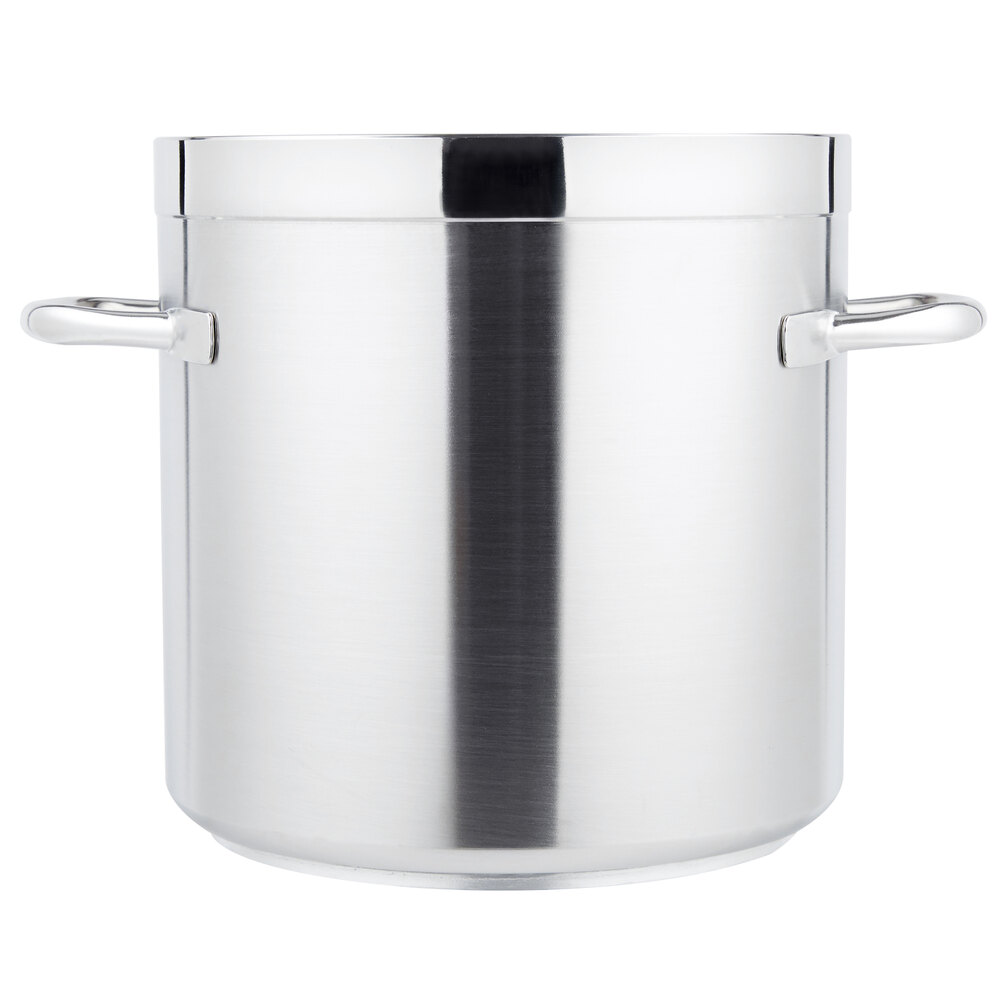 Thanks to its tall sides and wide base, this Vollrath 3103 Centurion 10.5 qt. stock pot is ideal for preparing soups, pasta, large vegetables, and steaming or boiling lobster! This pot's tall, narrow profile is designed to help preserve liquids longer and force them to bubble up through the ingredients in the pot, maximizing flavor transfer.