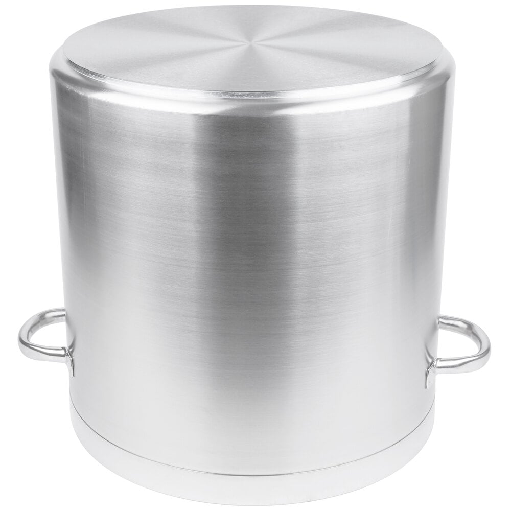 Thanks to its tall sides and wide base, this Vollrath 3118 Centurion 74 qt. stock pot is ideal for preparing soups, pasta, large vegetables, and steaming or boiling lobster! This pot's tall, narrow profile is designed to help preserve liquids longer and force them to bubble up through the ingredients in the pot, maximizing flavor transfer.
