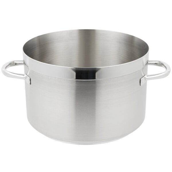 This Centurion induction sauce pot's 18-8 stainless steel construction won't pit or discolor so it has the most longevity in your commercial kitchen. This durable material limits flavor transfer and is easy to clean.
