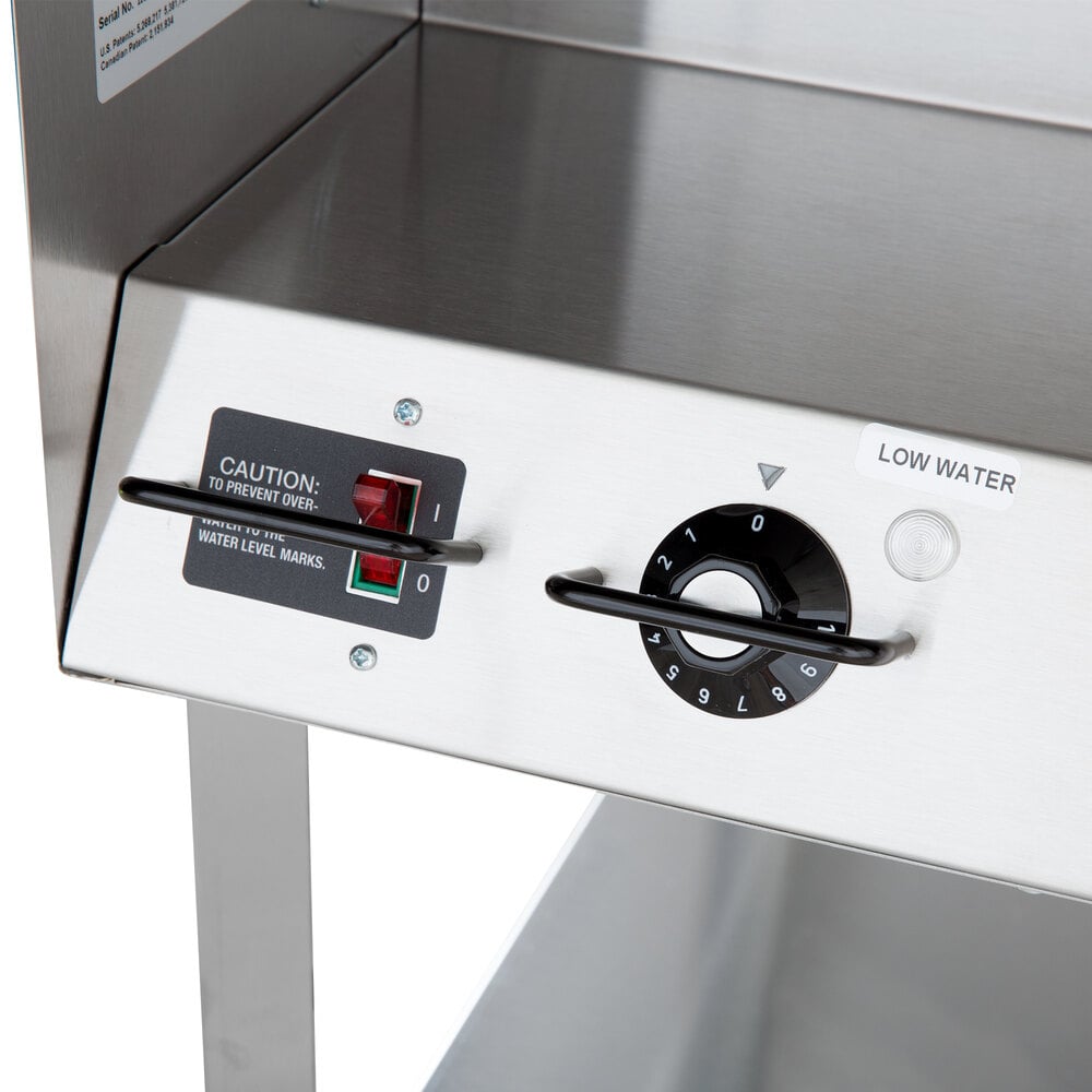 This hot food table has thermostatic controls to help your staff keep hot foods at the perfect serving temperatures. Each well has a total of 480W of heating power.