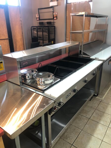 This Vollrath 38054 single deck cafeteria guard features a clear acrylic front panel, which creates a barrier against airborne contaminants between your customers and cafeteria serving staff. It attaches easily to any Vollrath 4 well hot food table or 4 pan cold food table and and adds an additional level to serve or display plated menu items. The Vollrath 38054 single deck cafeteria guard with acrylic panel is made of durable stainless steel.