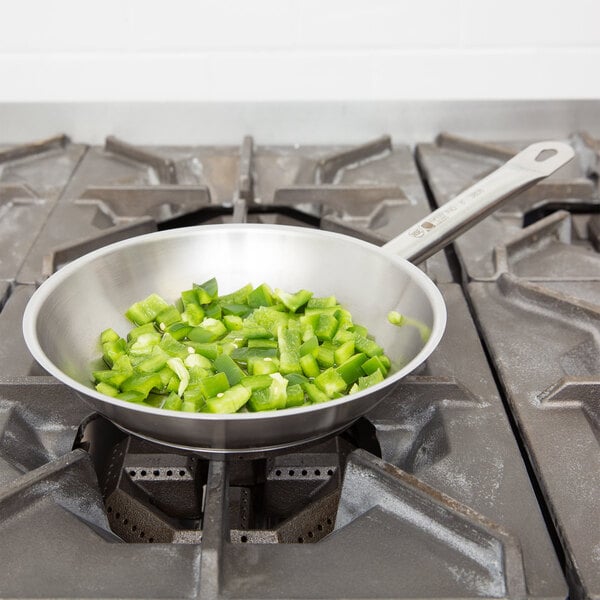 Ideal for use in low to medium volume commercial kitchens, this item features gently sloped sides that are perfect for turning, flipping, and removing delicious vegetable medleys from your pan. It also offers a stainless steel construction for flavor neutrality and an aluminum-clad bottom for even heat distribution, ensuring that your food is thoroughly warmed and cooked. Plus, its welded handle helps you avoid sanitation issues caused by harmful bacteria build-up.