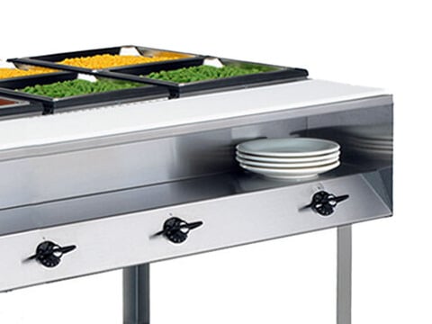 This steam table comes with a wide plate shelf on the front to where you can keep plates close at hand.