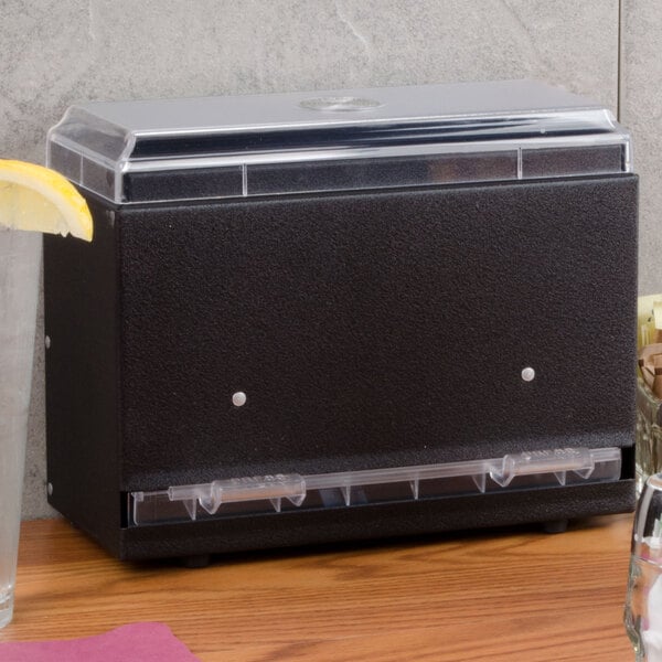 Simply press down on the lever to dispense a single straw. This keeps straws organized and helps to protect them from airborne contaminants for a neater, more sanitary countertop.