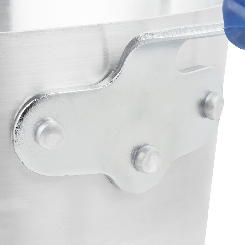 The riveted-on handle is permanently attached to ensure a rigid connection between handle and vessel, guaranteeing longevity in a commercial kitchen.