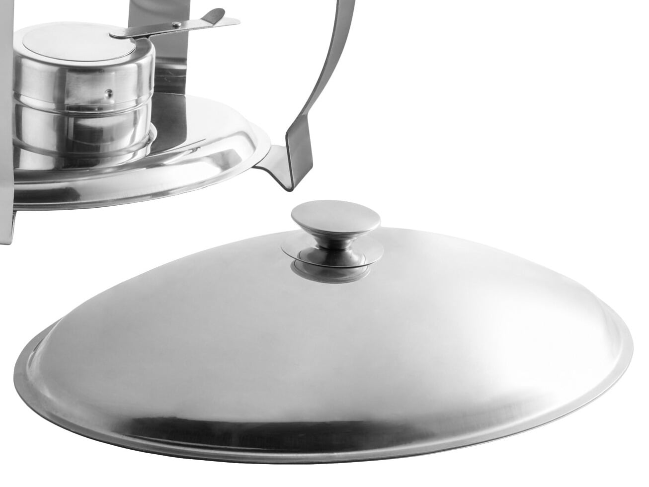 This chafer is simply exquisite. It has an elegance and simplicity that combine to make a stunning serving piece. The very highly mirrored surface contributes to this piece's pleasing appearance. Being able to store yet display the lift off lid is an added plus. I was concerned that with such a highly polished finish the pieces I ordered would be dinged or scratched, but they arrived without a flaw. This item is definitely a homerun. You won't be dissatisfied with this lovely chafer.