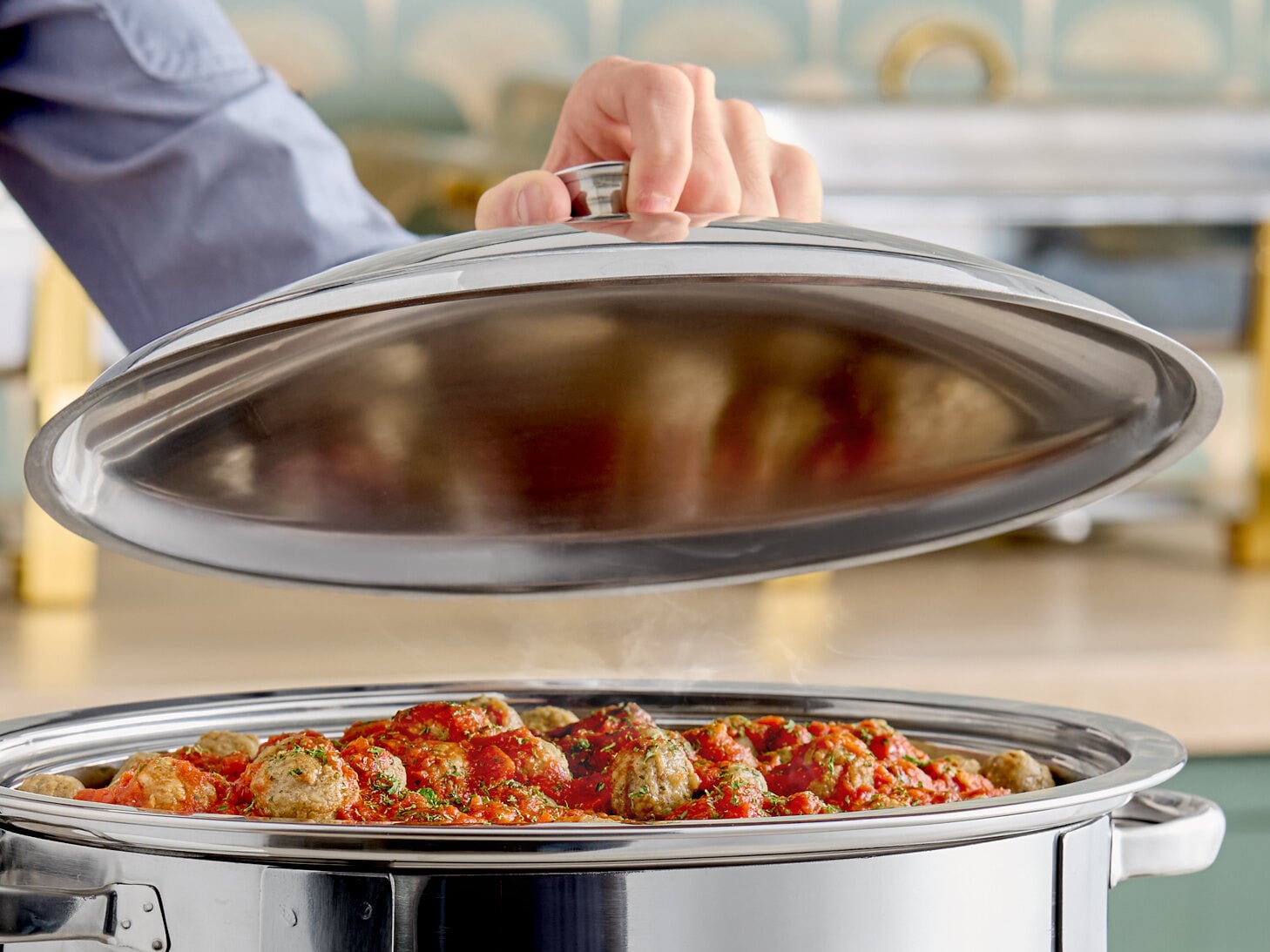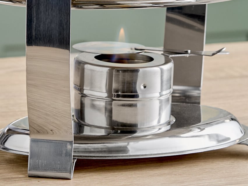 A built-in fuel holder beneath the chafer will keep your food at the perfect serving temperature for the duration of your event.