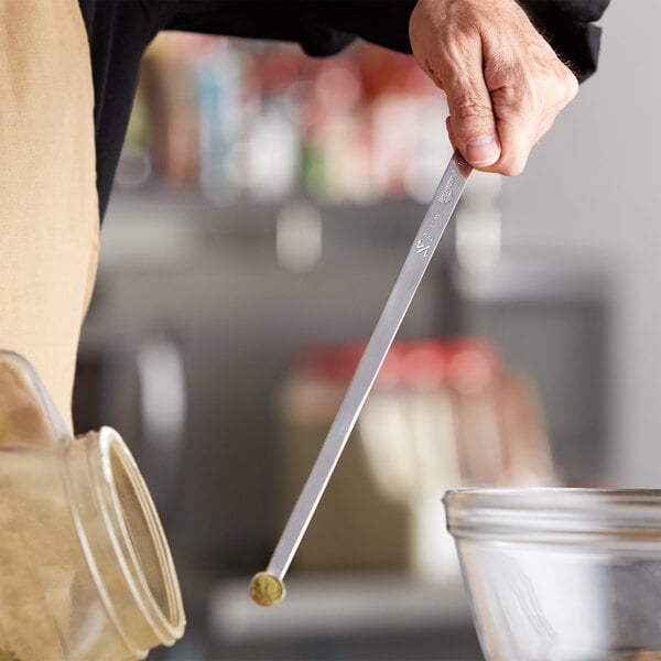 You'll never have to reach a normal-length measuring spoon into a commercial-sized container again thanks to this Vollrath long handled measuring spoon. Having the right tools in the kitchen is an easy, simple way to ensure your staff is practicing proper food safety guidelines for a safe, sanitary kitchen.