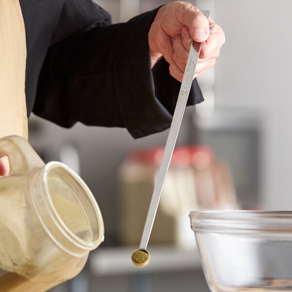 Designed specifically for commercial-size spice jars, this spoon can get you an accurate measurement without risking contamination by reaching your entire hand into a container. Ideal for restaurants, cafes, and catering services, this measuring spoon adds convenience to any kitchen!