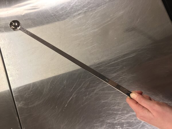 Wonderful to have for spices that you just want to add a little of but are in deep containers! We keep this on hand to add turmeric or cayenne to dishes! The handle is sturdy.