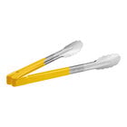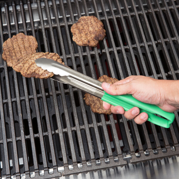 The Vollrath Jacob's Pride® 4781270 12" long green coated handle tongs are easy to clean thanks to their one-piece construction. They're constructed from durable 20-gauge stainless steel, with plastic coated handles that are heat-resistant up to 225 degrees Fahrenheit. The stainless steel end of the tongs is heat-resistant up to 350 degrees Fahrenheit.