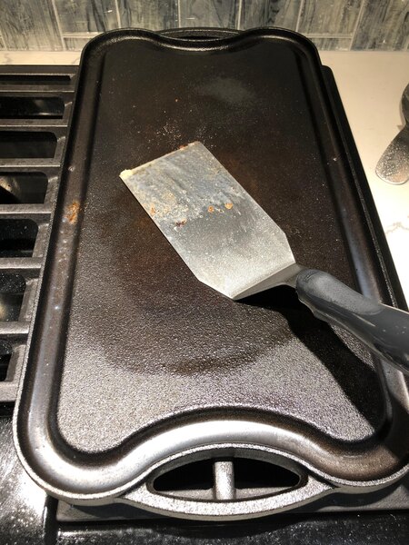 I have a smaller solid turner for hash browns, glad I picked this one up for the flat top griddle. The longer head is perfect for flipping larger patties and strong enough handle to make smash burgers. The high heat handle hasn’t melted when working close to a screaming hot cast iron griddle.