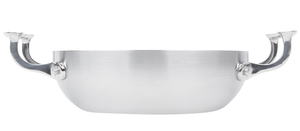For the most elegant presentation, this 8" french omelet pan's interior and exterior stainless steel surfaces feature a beautiful satin finish.