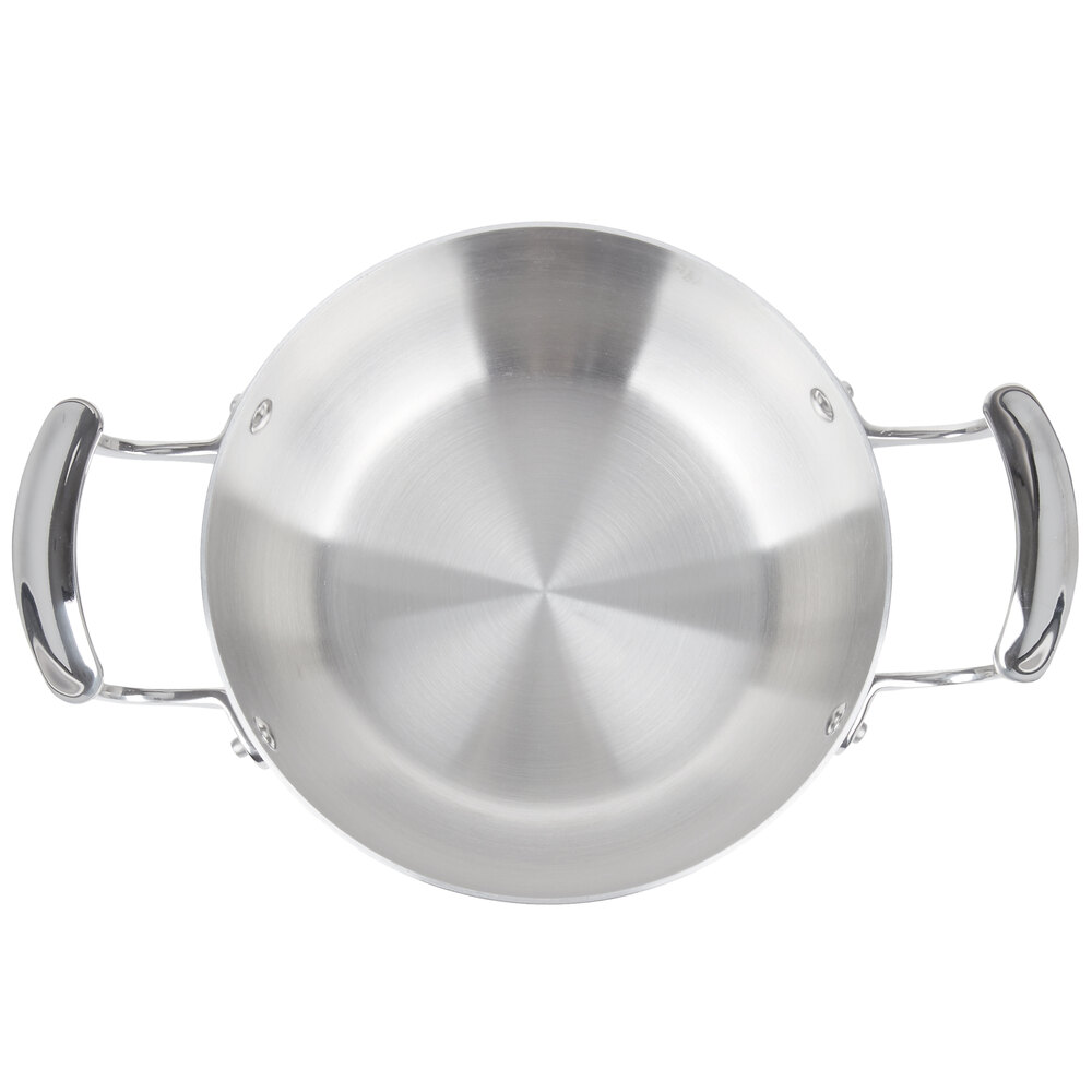 The beautifully designed aesthetics allow your dish to go straight from stove to table, impressing your guests, while the thick, three-ply construction is durable enough for any fast-paced display kitchen. This french omelet pan is perfect for heated shelves, steam tables with adapter plates, or induction ranges. Let the Vollrath Miramar® 49417 8" french omelet pan take the guesswork out of cooking a delicious meal.