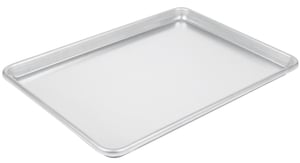 Once again, I find myself giving a 5 star rating on a product. WIth this one, you get what you pay for. Heavy, doesn't warp, and for one of our ovens, we slide it in and out on the oven rack supports. Important: That is why we got this one, not the one 1/4" smaller and maybe $1.77 less. We don't need to bother with the rack. Take out your tape measures and check it out. Our big mistake: we should have bought 4 or 6 at the same time. So I came online to order more, and decided to write a review. We make our own granola with these pans, using parchment paper that easily fits into the pan... The same oven with lesser quality pans burned the granola at the edges, undercooked in the middle. Not so with these pans. Heat evenly and are easy to clean. Those old pans: giving them all away.