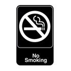 Make it known that smoking is not permitted, with this Vollrath 5613 Traex® no smoking sign. This 6" x 9" sign is printed with "No Smoking" in bright white font. Accompanying graphics reinforce there's no smoking permitted. The clear font and large graphics both offer a distinct contrast to the durable black plastic sign, ensuring visibility near or far.