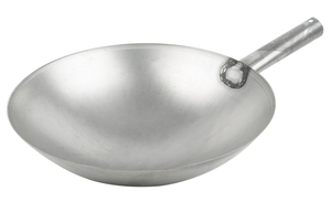 This wok seasoned easily and well using the high heat method.The handle gets a little warm, but not hot, so you can hold on to it throughout the cooking without a glove. The bowl has a nice curve that fits my wok burner well. A nice wok, traditional in appearance and performance.