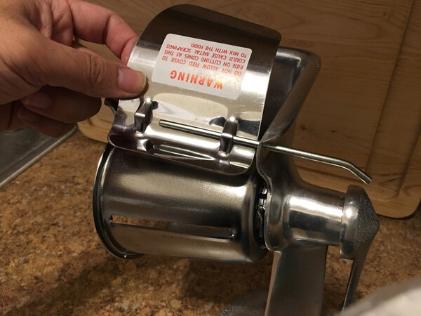 This OEM cover for the Vollrath King Kutter fits well, and slides right into place with the pin. It covers the cones well to prevent accidental cuts.