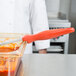 Control portions and maximize profits with this Vollrath Jacob's Pride® 6412865 8 oz. orange solid oval Spoodle®! Perfect for creating consistent serving sizes and dishing up just the right amount of dips, dressings, sauces, gravies, and more, this kitchen staple combines the convenience of a serving spoon and the accuracy and consistency of a ladle. Practically designed, this Spoodle® features a built-in stopper notch to prevent the handle from sliding into food pans, and a textured, ergonomic handle to reduce hand fatigue. The oval scoop is designed to reach food pan corners, ultimately reducing waste and increasing the number of servings per pan!