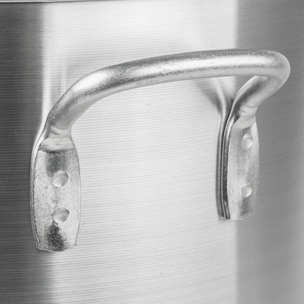 Constructed of standard 6-gauge energy-efficient and impact-resistant 3004 aluminum, this stock pot is designed for commercial kitchen use, ensuring a long life and superior performance.