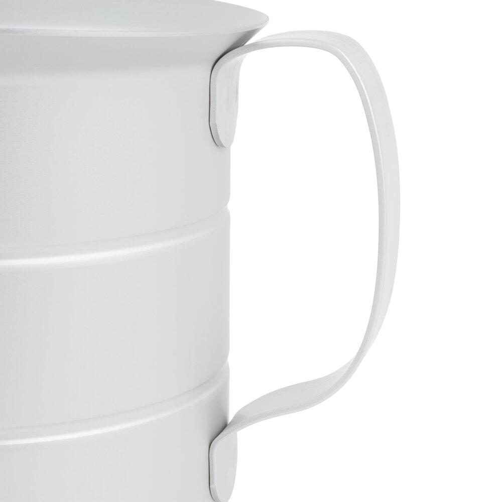 Made of heavy-duty aluminum, this measuring cup is designed for use in high-traffic kitchens, bakeries, cafeterias, or restaurants. Featuring an ample 4 qt. size, this measuring cup is ideal for precisely measuring large amounts of liquids and batters as well as flours and sugar. Its sleek, modern design utilizes embossed lines instead of numbers for a smoother appearance, with the lines marking 1 qt., 2 qt., 3 qt., and 4 qt. on both the inside and outside of the cup. And at just 9 1/4" tall, this measuring cup is easy to store when not in use.