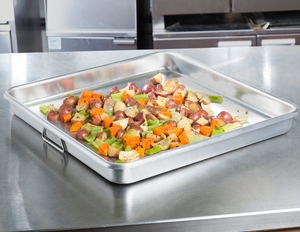 This roasting pan top features a heavy-gauge 3004 aluminum construction with a beadless rim for the ultimate in durability in your commercial kitchen. This 12 gauge aluminum roasting pan top heats evenly and efficiently for perfect results every time.