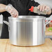 Two loop handles make it easy to lift and carry this stock pot as you strain liquids or pour sauces into storage containers for cooling.