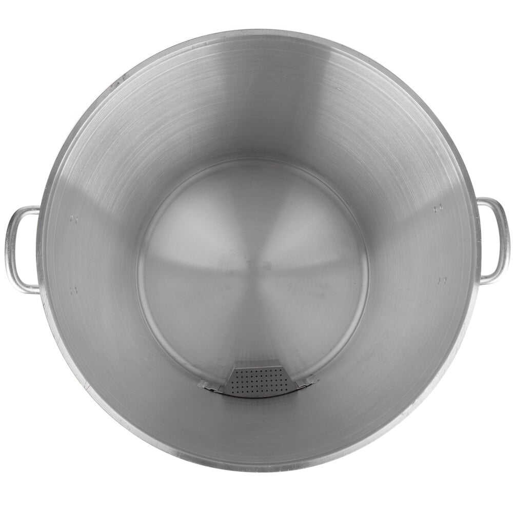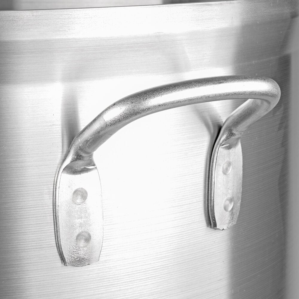 This heavy duty aluminum stock pot is perfect for preparing and serving stocks! The large capacity (80 qt) suits the bigger batches of our restaurant soup.