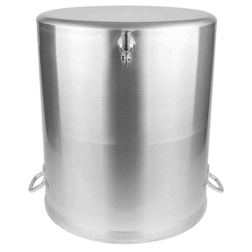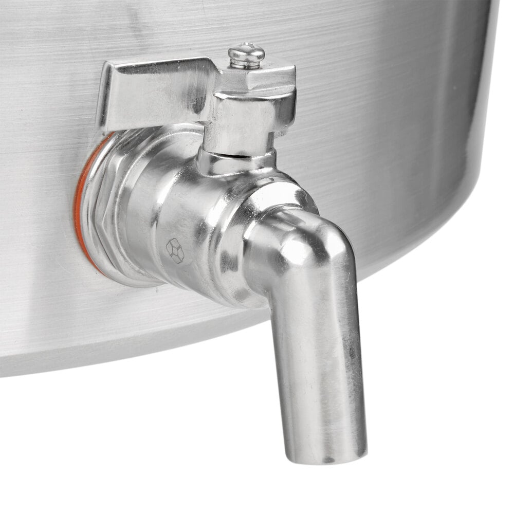 The 60 qt stock pot with faucet from Vollrath is pretty simple, but very well made. Vollrath is one of the very few manufacturers that will have large stock pots with a faucet, at a good price.