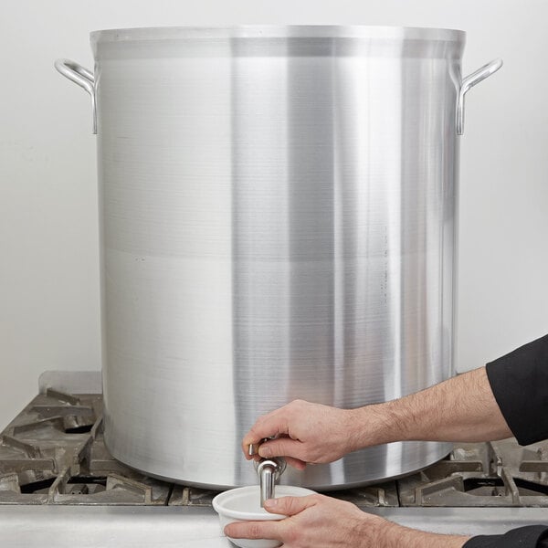 With the same durability and reliability you've come to expect from the Vollrath Wear-Ever Classic Select line, this stock pot is sure to become a go-to item in any busy commercial kitchen. Built to last, this stock pot features a faucet for added efficiency and ease of use during the serving process. Plus, its large capacity makes it great for bigger batches of house soups.