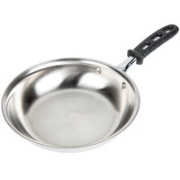 Very thin and bendable metal. It got bent being dropped once and no longer forms a tight seal on pans.