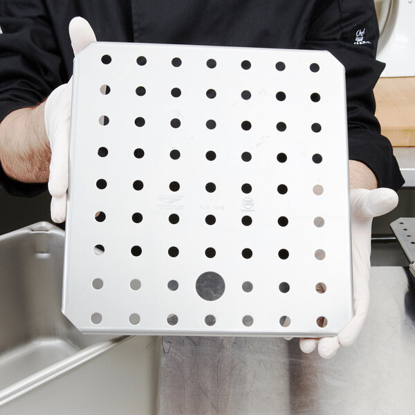 Designed to raise your food up off the bottom of a hotel pan, this false bottom lifts food up to display it better and also allows oil, sauce, or water to drain off. This is helpful since the foods will be more visible and easier to reach in the pans and it also keeps food from becoming soggy or over-saturated to make sure that your delicious fried chicken or french fries stay crisp and appetizing.