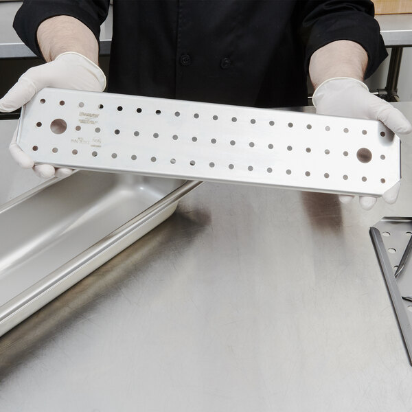 With this Vollrath 70500 Super Pan 3® long half size stainless steel false bottom, you can keep food looking its best.