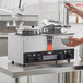 Independent thermostatic temperature controls make precise temperature monitoring a breeze, while knob guards reduce the risk of the temperature settings accidentally being changed. For fast preheating, this rethermalizer has a timer that will cause the heating element to run on high for a preset amount of time. When the timer reaches zero, the element can be controlled by the normal temperature control knobs. In addition, this soup warmer features a wide, dripless lip to prevent messes and non-skid feet for excellent stability while in use. This unit requires a 120V electrical connection and has a total output of 1400W.