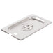 The Vollrath Super V 1/9 Size Slotted Stainless Steel Steam Table/ Hotel Pan Cover fits well on a 1/9 size pan. The handle is easy to grip and utensils fit well in the slot. The price is great for the quality. I would highly recommend this.